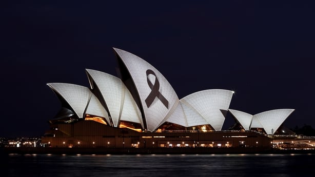 A black ribbon was projected onto the Sydney Opera House on Monday as a mark of respect for the victims of that attack.