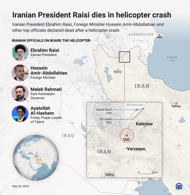 Mr Raisi had been at the Azerbaijani border on Sunday to inaugurate the Qiz-Qalasi Dam, a joint project.