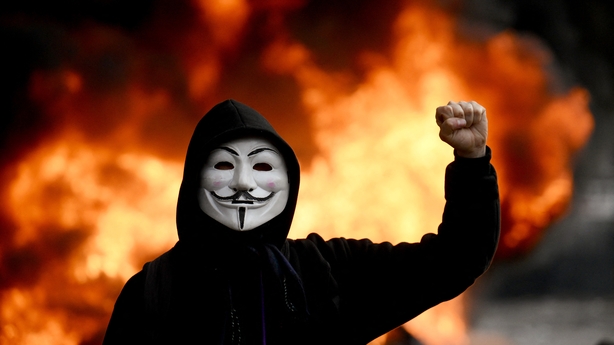 Later, as night fell, thick blocks of shield-bearing officers and others on motorbikes pushed back the protesters, who overturned two cars - one of which belonged to a local media organisation - and set them on fire.