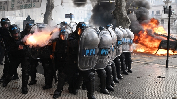 Scuffles broke out earlier when protesters tried to bypass a system of fences set up between them and Congress. Officers used rubber bullets and pepper spray against the rioters, who responded by lobbing stones at the police.