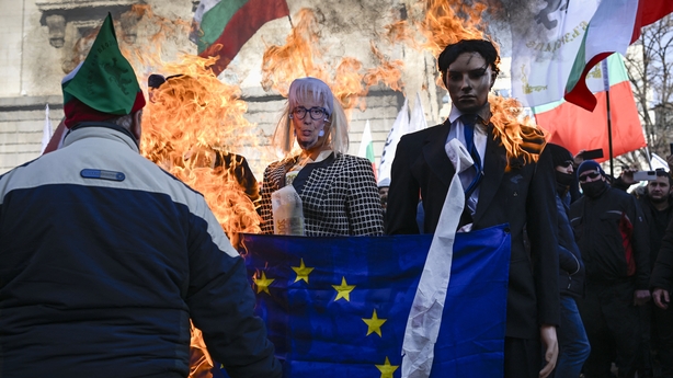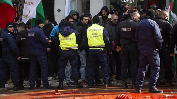 "We don't want Bulgarian financial independence to be destroyed. We want to keep the Bulgarian lev," Kostadin Kostadinov, the Revival party chairman, told media. "We are here to defend our freedom."