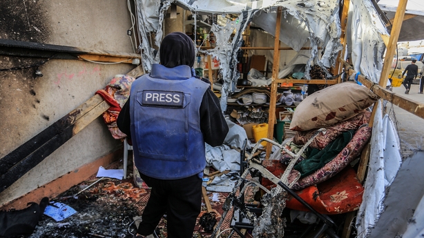 Meanwhile a Palestinian journalist was killed and nine others were wounded, some critically, when an Israeli air strike hit a tent used by local media in southern Gaza, medics and the local journalists' union said.