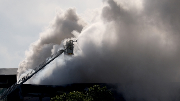 It said it was "monitoring the column (of gas) caused by the blaze for changes and for its toxic levels".