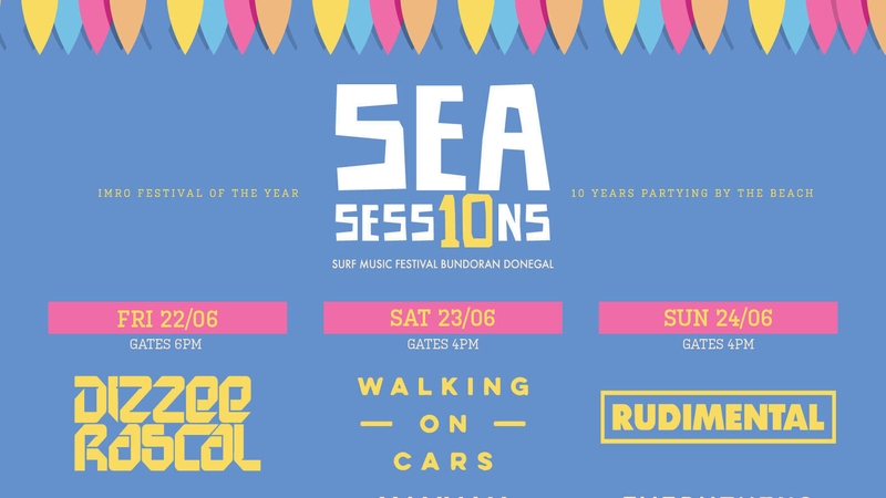 Sea Sessions 2018 festival lineup includes Dizzee Rascal, Walking On Cars, Rudimental, Everything Everything, Hannah Wants, Dusky, Delorentos, Chasing Abbey, Hudson Taylor, Le Galaxie, Jerry Fish, Kormac (Av Show), Fekky, The Blizzards, Versatile, DJ Yoda (AV Show), Wild Youth, Greg Wilson, Stomptown Brass, Fabio, Ryan Mc Mullan, The Hot Sprockets, DJ Deece, David Keenan, Wille & The Bandits, Slow Place Like Home, Waldorf & Cannon, Amber & The Bear, Marc O Reilly, Get Down Edits, DJ Mek, Brave Giant, New Valley Wolves, Elaine Mai, The Clandestinos, 1000 Beasts, Vernon Jane, Thumper, Alan Finan, Delta Fuse, Salty Sea Dogs, Bpm, Colin Perkins, A Different Animal, Order of The Mess and Ciara Brady.