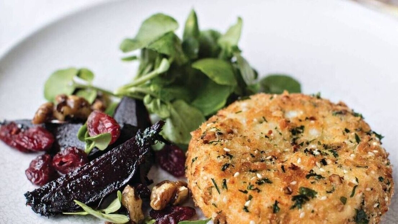 Crispy Goats' Cheese with Roasted Beetroot, Cranberries, Watercress & Caramelised
