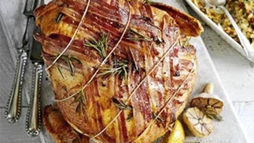 To test if the turkey crown is cooked, pierce the thickest part with a long clean skewer or knitting needle. If the juices run clear, it's ready. If it’s a little pink, then return it to the oven and