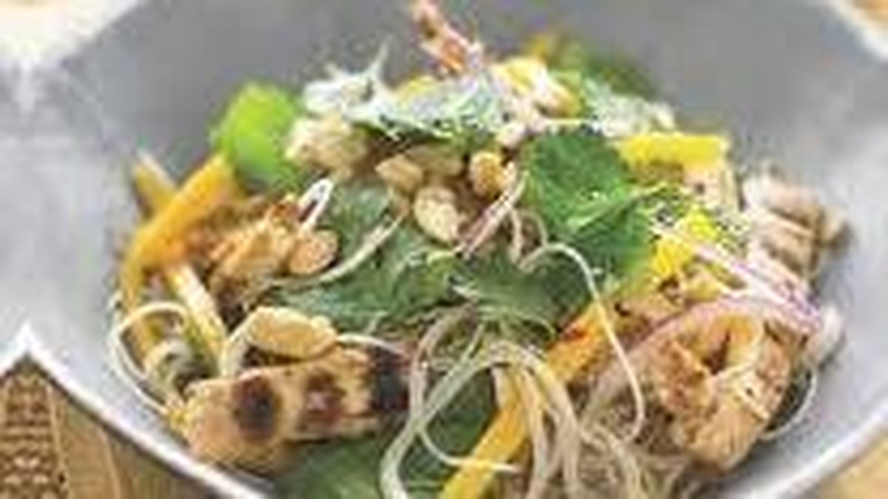 This quick light salad is perfect for eating al fresco, whether you decide to cook the chicken under the grill or on a barbecue so that it can be brought along as part of a picnic while it is marinating. Raw tiger prawns would make a nice alternative to the chicken.