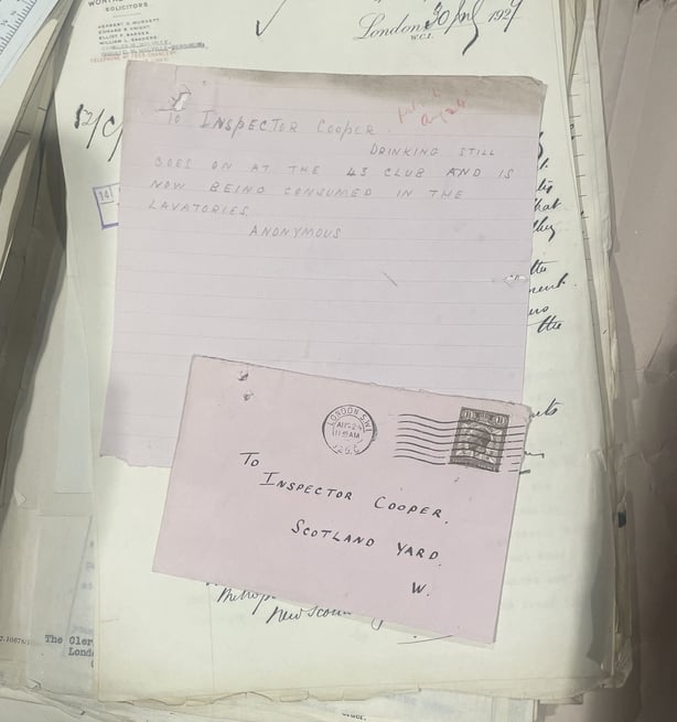 They showed me the many boxes of files held on Kate Meyrick in their archives, including divorce petitions, newspapers articles (she made headlines several times over a decade). The surveillance operation continued for many years.