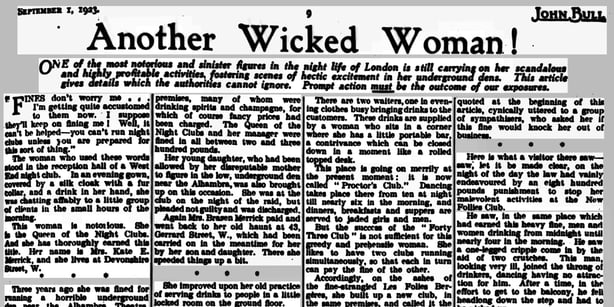 By 1928 that Kate Meyrick came unstuck for the last time. There were increasing rumours and anonymous letters saying that Meyrick was bribing a police officer to protect her premises. She became linked with the financial affairs of Detective Sergeant Goddard, a member of ‘C’ division. He was one of the policemen involved in many of the raids of Mrs Meyrick’s premises dating all the way back to her first club Dalton’s in 1920. Meyrick's downfall is really simple, she's exposed for bribing Goddard, the police officer that on the surface has done so much to control and limit her business.