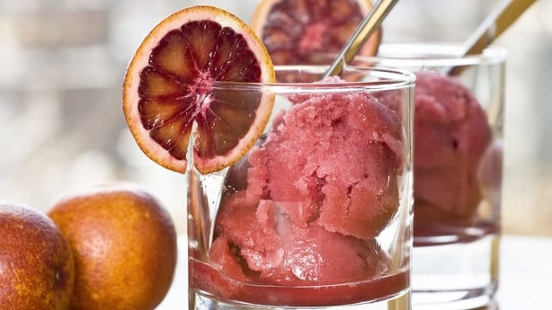 To Serve Segment the oranges for garnish. Scoop out the sorbet and serve in chilled bowls or plates. Garnish with blood orange segments and fresh mint leaves.