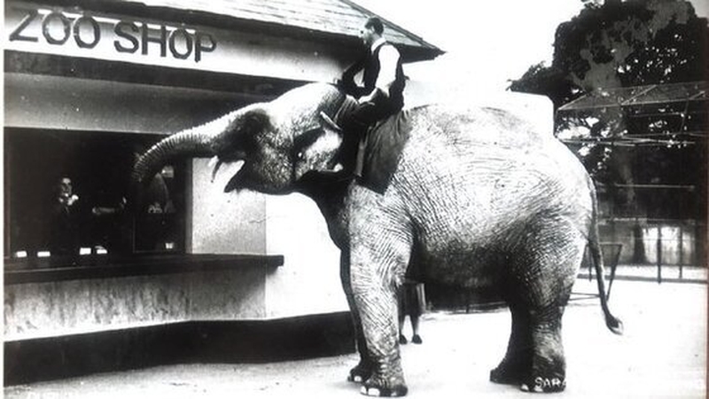 Jim Kenny and Sarah formed a double-act – she would 'play' harmonica for American tourists and carried Irish children on her back for almost 30 years. However, in 1958, she fell, while carrying children. This, and a change in attitude to the care of animals in zoos, led to the end of elephant rides. Eventually, Sarah had to be put down, much to the distress of her keeper.