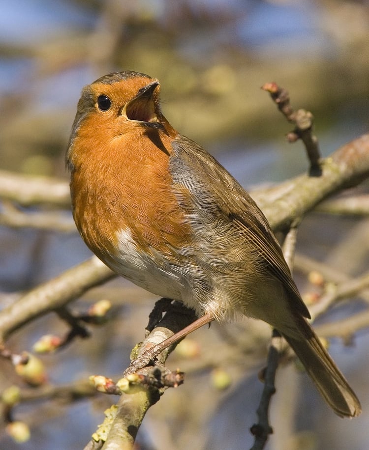 The Robin is something of a 'loner' among our birds, being related, though not very closely, to the thrushes and chats. He is found throughout Europe, including European Russia. He breeds also in northern Morocco, Algeria, the Canary Island and Madeira. Robins visit Asia Minor in winter. The bird is found throughout Ireland, in towns and cities as well as the country. There are probably four million Robins in the country. The confiding behaviour of the Robin is peculiar to Britain and Ireland. Elsewhere he is shy and skulking.