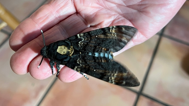 Recently, Jesmond Harding from Butterfly Conservation Ireland was in-studio to express alarm at the plight of Ireland’s butterflies and moths. He wasn’t alone on that occasion: he brought in a surprise guest with him, namely the (extremely large) pupal stage of the Death’s-head Hawk-moth. This extremely striking creature is not a common insect in Ireland. In fact, it is only occasionally found here and only in the east of the country.