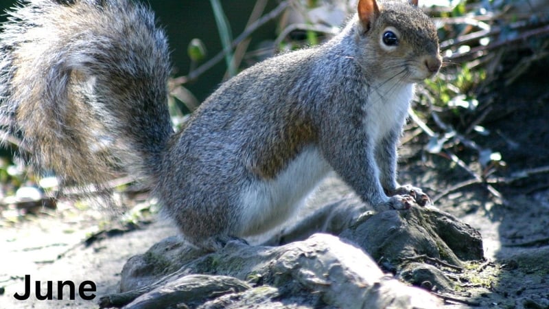 Walking through woodland at this time of year, especially early morning allows you the opportunity to view the grey squirrel. Although not native to Ireland, in fact only introduced here in the last century, they have spread to many woodlands in the eastern half of the country. The grey squirrel is a pest, damaging trees in gardens and orchards as it strips the bark to eat the softer tissue below. Grey squirrels also raid birds nests taking eggs and nestlings as well as food left out for the birds at bird tables. The squirrel builds it nest, or drey, in the branches of trees. The female has two litters a year, each with up to seven young.