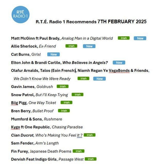 RTE RADIO 1 RECOMMENDS 7TH FEBRUARY 2025 Published • 12:29 • Friday, 7 Feb 2025 RTE RADIO 1 ALBUM OF THE WEEK 7TH FEBRUARY 2025