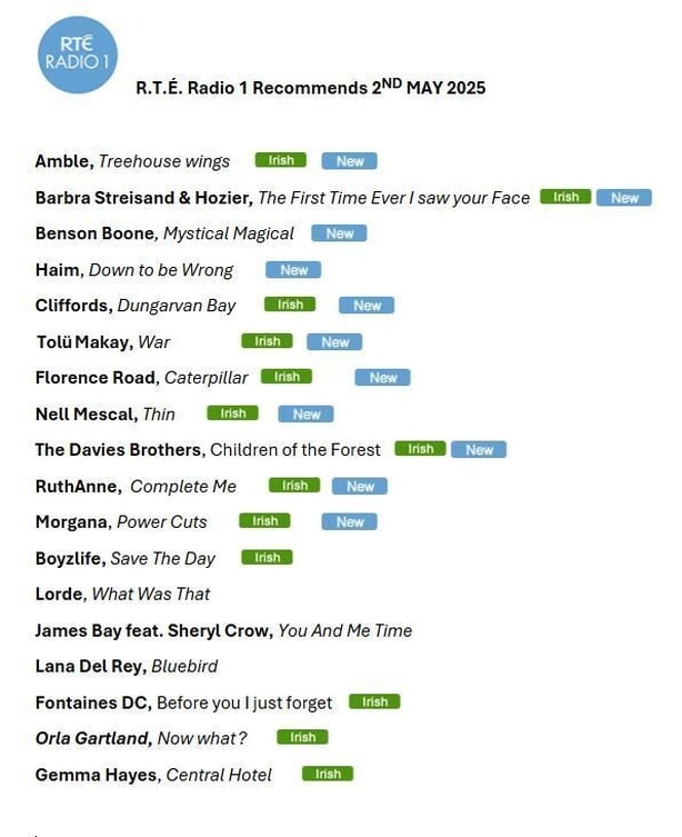 RTE RADIO 1 RECOMMENDS 2ND MAY 2025 Published • 12:15 • Friday, 2 May 2025 RTE RADIO 1 RECOMMENDS RTE RADIO 1 ALBUM OF THE WEEK - GIGI PEREZ, AT THE BEACH, IN EVERY LIFE