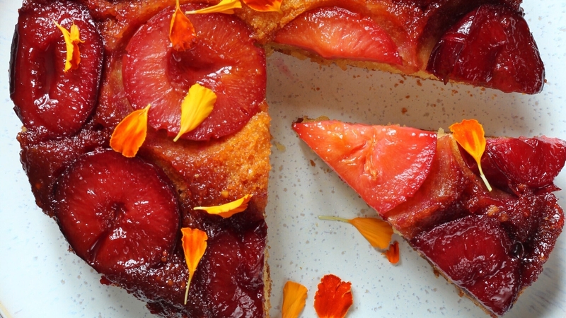 Upside down plum cake