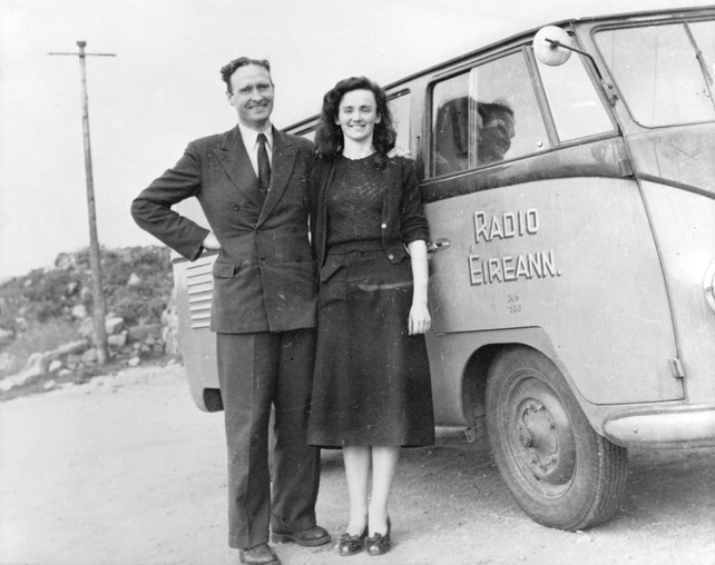 Proinsias Ó Conluain Máire Nic Eachmharcaigh (a bhí ag obair ar Inis Caorach in aice le hÁrainn Mhór agus a casadh ar Phroinsia Ó Conluain ar Árainn Mhór) agus an Taonad Taistil i gCroithlí Mí Aibreáin 1955.