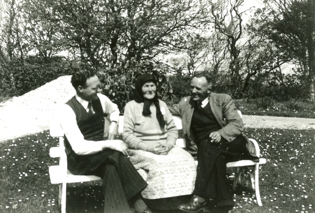 Jack “The Glen” Ó Baoill (ba leis an tÓstán), Róise Mhic Ghrianna, cailín a bhí ag obair san óstán agus Jimmy Mahon (RÉ).