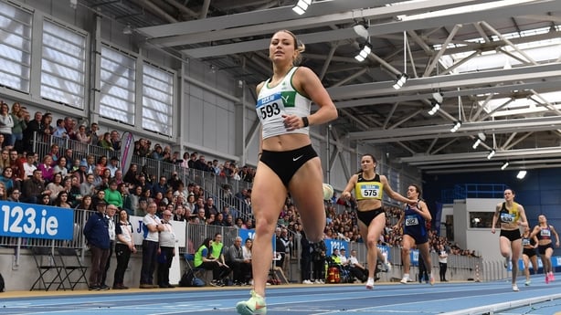 Elsewhere there were national titles for Sarah Leahy at 60 metres, Iseult O'Donnell at 800, Carla Sweeney at 1500, Cheryl Nolan at 3000 while Eoin Pierce took the men's 1500 metres title.