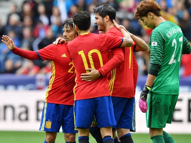 Spain showed their appetite for a third successive European Championship success with a 6-1 warm-up win over South Korea in Salzburg.