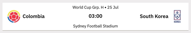 Colombia and South Korea will play the final game of the opening round of group matches. Their clash will be the 300th match in the history of the tournament.