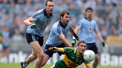40 min Denis Bastick and Bernard Brogan combine to leave the Kerry defence trailing. Bastick is handed the scoring opportunity and he wallops it over the bar. Kerry 1-02 Dublin 0-08