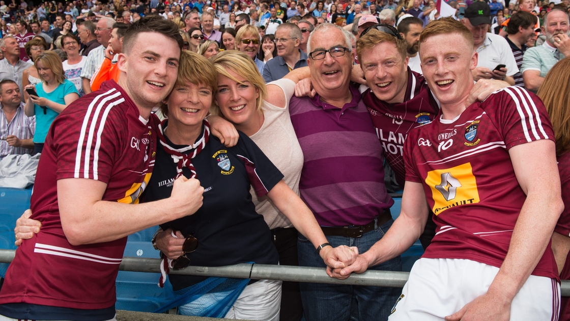 Westmeath players John, far left, and Ray, far right, celebrate victory over Meath in the 2015 Leinster semi-final with mam, Mary, sister, Eimear, dad Paul and brother David