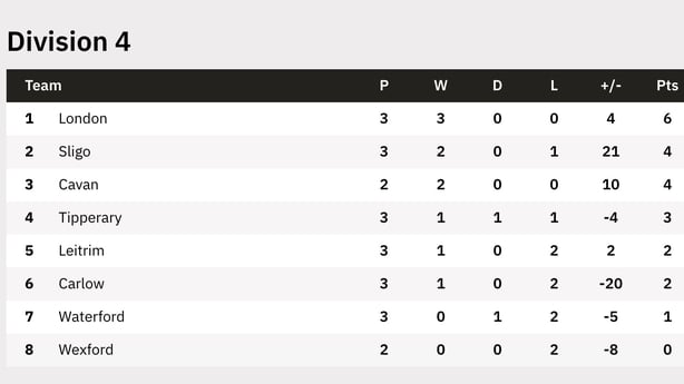 Sligo slipped to their first defeat away to Tipperary on Saturday, leaving Cavan as the other unbeaten side along with London. The Breffni men will enjoy home advantage for the visit of Carlow and a first meeting between the sides in the league for 22 years.