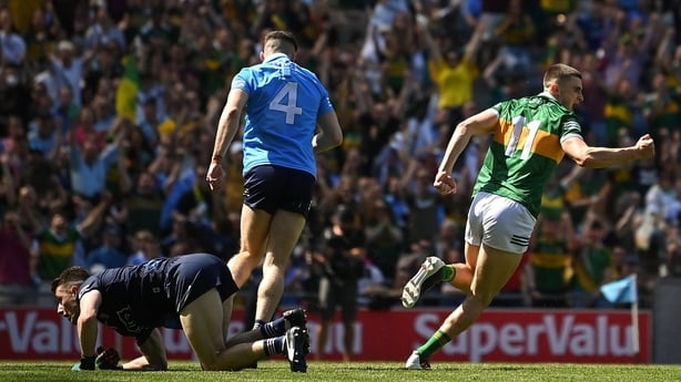 All was going smoothly for Kerry until they were rocked by the concession of a goal in the third quarter, Dublin capitalising on sloppy Kerry handling in midfield, launching a rapid counter which ended with Cormac Costello rattling a low shot into the far corner.