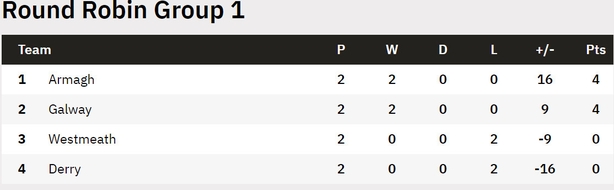 A draw will be enough to see Westmeath advance due to their better scoring difference.