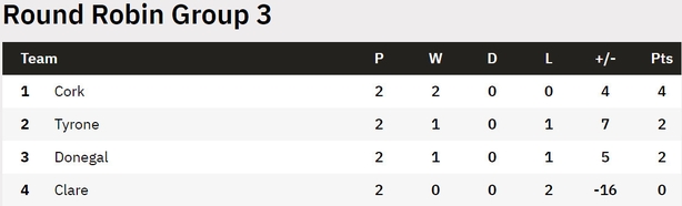 Cork's pace on the counter gave was also an issue for McGuinness' side who, nevertheless will be confident of overcoming the Banner challenge in Castlebar. A win could propel the Ulster champions to the top of the group. The outcome of the Tyrone-Cork game in Tullamore will be crucial.