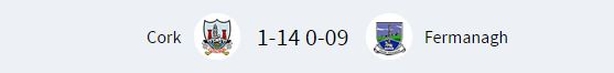 Fermanagh: T Treacy, M Jones, C Cullen, B Mulcrone; D McCusker, R McCluskey, L Cullen; E Donnelly, R Hyde; A Breen (0-1), P McCusker, R Lyons; E Courtney (0-1), S Quigley (0-5, 3fs, 1 ’45), T Corrigan (0-1).