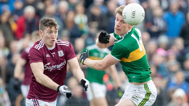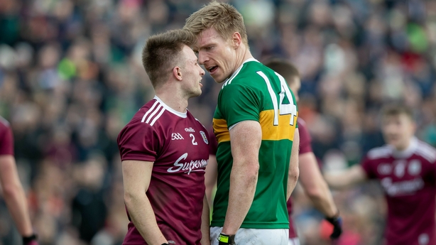 Kerry received a setback when Stephen O’Brien was black carded following a tussle with Eoghan Kerin after 17 minutes, but the damage could have been far greater had Sean Kelly found the net for Galway after McHugh’s quick free moments later.