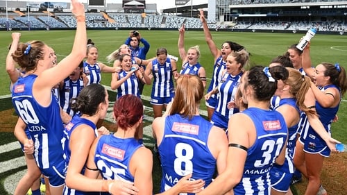 Aileen Gilroy helped the North Melbourne Kangaroos to an emphatic victory over the Geelong Cats in the opening round of this season's Women's Aussie Rules campaign.