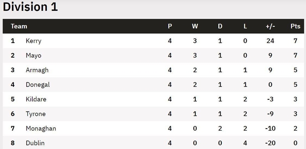 The Division 1 pacesetters face off in Austin Stack Park. A possible precursor for the divisional final itself? Dare we mention it, but maybe a dress rehearsal for an even bigger prize on 24 July? Okay, we may be getting ahead ourselves but Kerry and Mayo have delivered some eye-catching performances this spring, This, after sluggish enough showings against Kildare and Donegal respectively in Round 1.