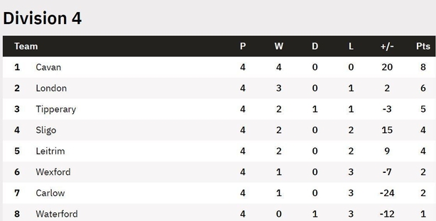 The scramble for promotion is proving every bit as intense as was predicted pre-season, with only three points separating the top seven after four rounds. Wicklow, who are now under new management, with Alan Costello and Gary Duffy taking over from Colin Kelly, are bottom of the table on one point.