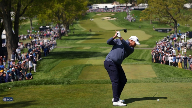 Another bogey followed on 17, though he got a boost around the turn, with a remarkable 52-foot putt for birdie on the first. Eschewing the wedge, Lowry rolled it up the slope to the right of the green, allowing it feed down to the hole for birdie.