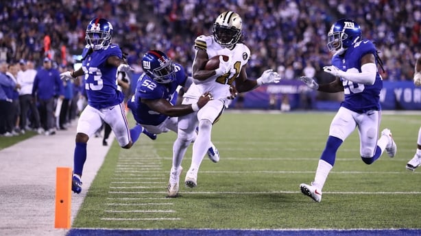 Kamara's 49-yard score with 2:06 left iced the game, capping a six-play,97-yard drive after the Giants had closed within 26-18 with 3:44 left.