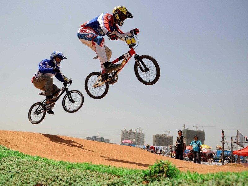 BMX, an acronym for bicycle motocross, involves eight riders who start together on the starting ramp and fight to stay ahead over jumps and tight corners.