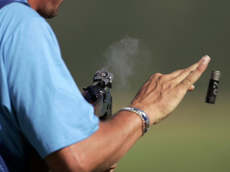 Athens Games champion Zhu Qinan of China won the silver and Henri Hakkinen of Finland took the bronze at the Beijing Shooting Hall on the outskirts of the Chinese capital.