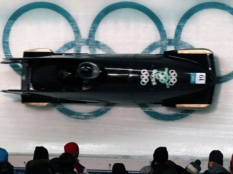 In the men's four-man bobsleigh, the American Night Train bob piloted by Steve Holcomb led after two runs, fuelling hopes of a first US men's gold on Saturday in the heavyweight sliding event since 1948.