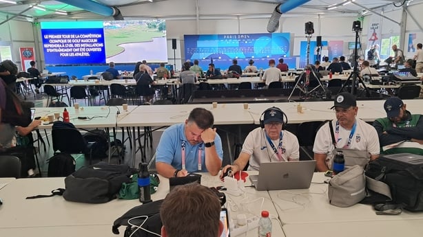 But back to the here and now. The temperatures were in excess of 30 degrees, even before midday. Play was well under way at that stage. Before I entered the arena, I stepped into the press room - quite spacious - and then I headed to have a look at RTÉ Radio commentary position. A tight space that RTÉ Radio commentator Gary Moran will be operating in over the weekend.