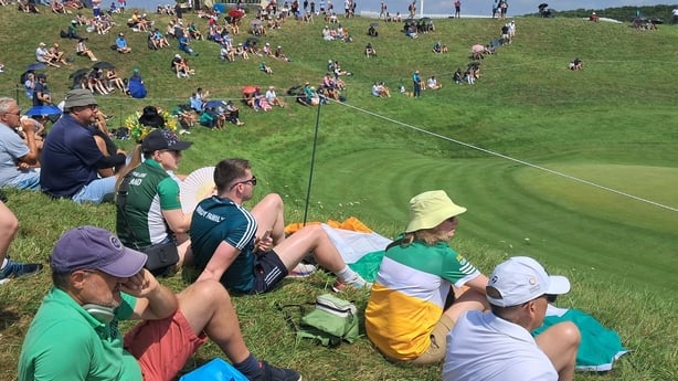 Out onto the course. Team Ireland's Rory McIlroy had just teed off, with Shane Lowry out some 90 minutes later. McIlroy had Scottie Scheffler and Ludvig Aberg for company and they seemed to be the star attraction. In the flesh, that Rory strut is quite pronounced; it imbues an air of confidence. Scheffler, up close, is stockier than the TV pictures would present. Aberg, the silent partner in the trio.