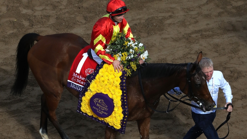 Iridessa was guided to success by Wayne Lordan, who was also opening his Breeders' Cup account, and he had the Pretty Polly and Matron Stakes heroine in a decent position from the start.