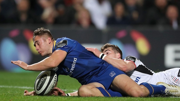 But a minute before the hour, Leinster struck for their second try. Rodney Ah You spilled a ball and the visitors moved the ball at pace out to the right wing. O'Brien dummied and straightened before giving Luke McGrath the scoring pass to dot down in the corner, with Byrne failing to convert from a difficult angle.