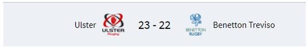 Final score: Ulster Rugby 23-22 @BenettonRugby #GuinnessPRO14 pic.twitter.com/qbymKVecpV