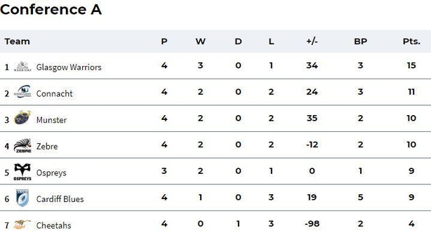 The win lifts Connacht above Munster and Zebre into second spot in Conference A.