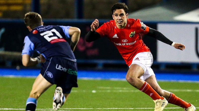 Joey Carbery returned to action for the first time in 13 months as Munster overhauled a first half deficit to beat Cardiff Blues in Cardiff Arms Park this evening.