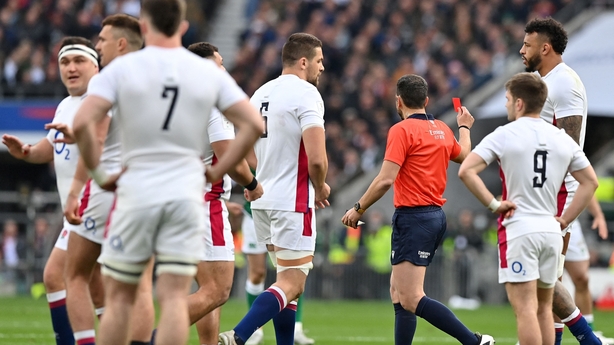 England played for 78 minutes with a numerical disadvantage after lock Charlie Ewels was red carded, but while the visitors never trailed, it was disjointed for large parts and the game was in the melting pot at 15-all with a quarter of an hour remaining before Ireland finished with a flourish.